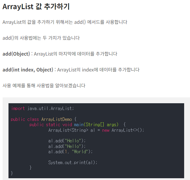 의미 : 일반 배열과는 다르게 자동으로 크기가 조절되는 객체를 만드는 클래스