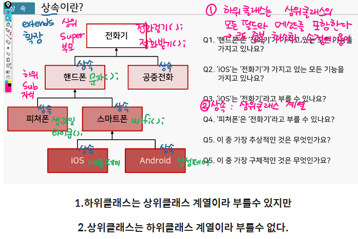 스마트폰, 피쳐폰 <- 하위 클래스