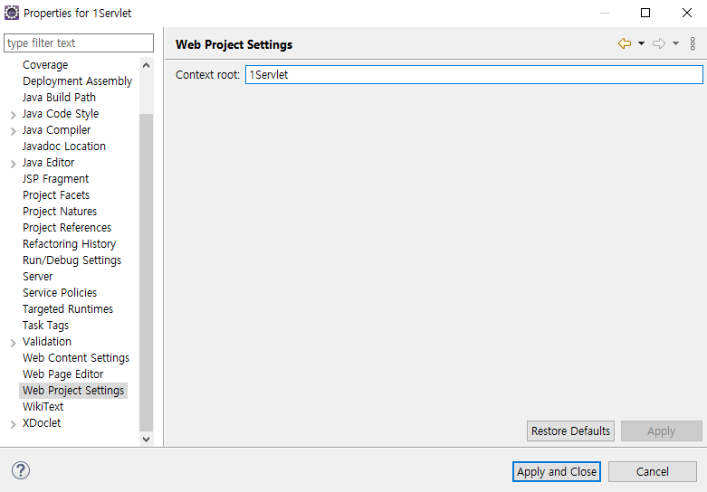 첫번째 : Properties -> Web Project Settings를 들어가서 이름을 바꾼다.