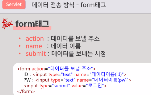 submit을 통해 <- html에 만든것을 servlet을 통해 데이터를 전송하게 된다.