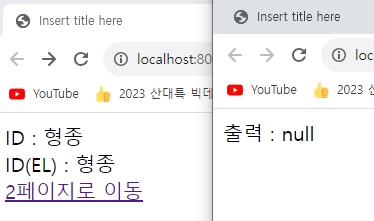 - JSP에서는 request내장 변수를 사용하고, Servlet에서는 HttpServletRequest객체를 사용한다.