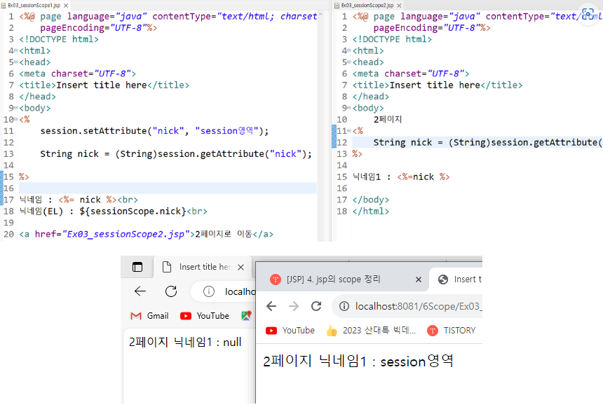 - Session Scope: 웹 브라우저 별로 변수가 관리되는 경우 사용.