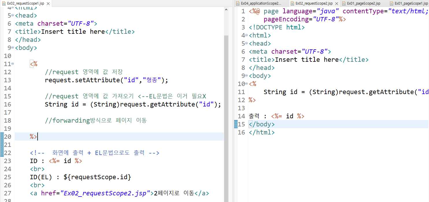 - forward 를 사용한 경우 해당 Page Scope에 지정된 변수는 사용할 수 없다.