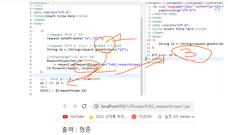 요청이 2번, 서로 다른 request 객체이기 때문에 데이터 전송할때