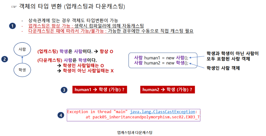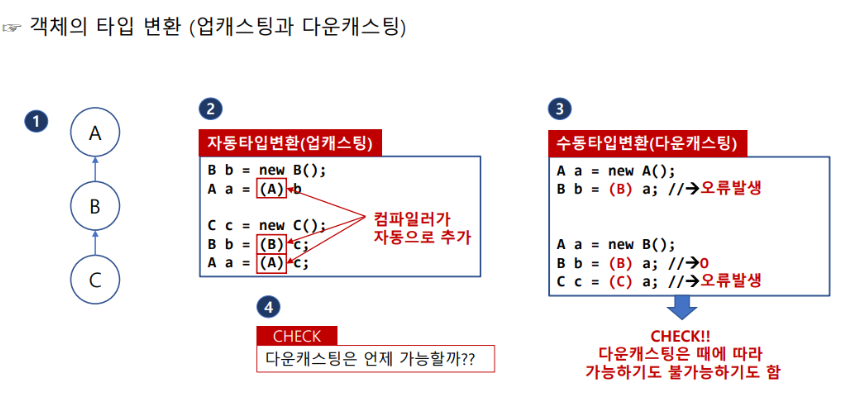다운캐스팅(Downcasting) : 업캐스팅과 반대인 캐스팅을 다운캐스팅이라고 한다.