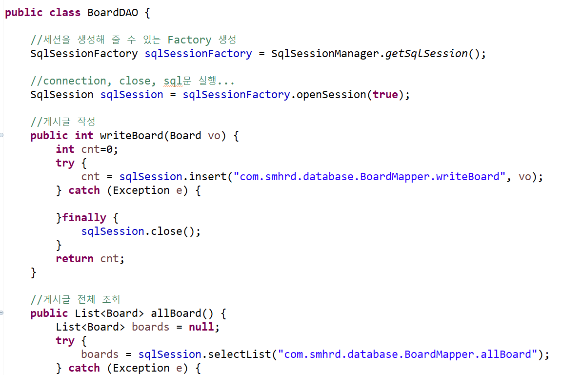 int 예시 = new MemberDAO().예시1(예시2); <-- MemberDAO에 있는값 설정하기