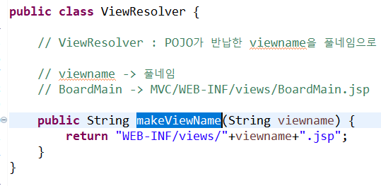 viewname을 설정 해두면 return에 viewname만 넣을시 jsp및 web-inf를 자동으로 추가해준다.