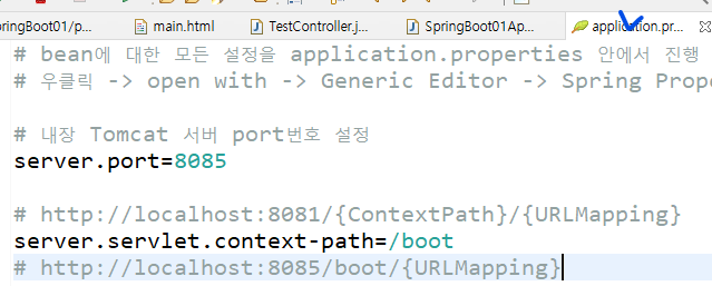bean에 대한 모든 설정을 application.properties 안에서 진행