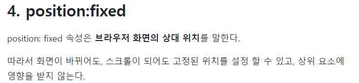 1.부모가 absolute 혹은 relative 혹은 fixed 일때만 위치선정 가능,