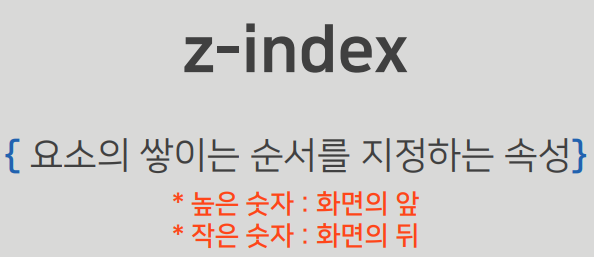z-index: 3;/*화면에 요소가 쌓이는 순서(뭘 더 앞에 보이게 할것이냐, 숫자가 클수록 앞으로 나옴)*/